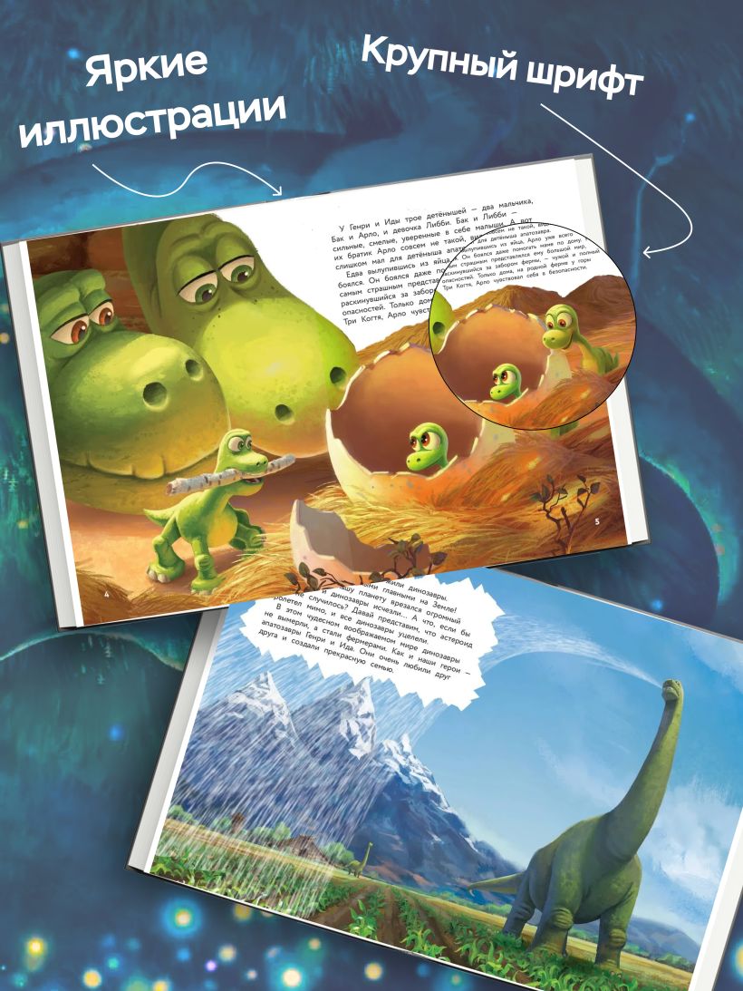 Читайте красочную добрую историю о маленьком апатозавре Арло и его друге — пещерном мальчике.