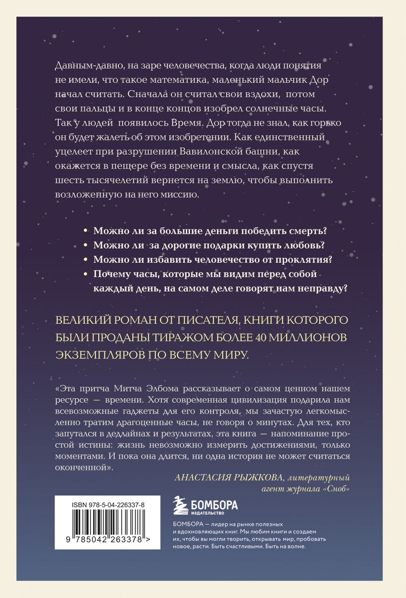 «Эта притча Митча Элбома рассказывает о самом ценном нашем ресурсе — времени. Хотя современная цивилизация подарила нам всевозможные гаджеты для его контроля, мы зачастую легкомысленно тратим драгоценные часы, не говоря о минутах. Для тех, кто запутался в дедлайнах и результатах, эта книга — напоминание простой истины: жизнь невозможно измерить достижениями, только моментами. И пока она длится, ни одна история не может считаться оконченной». — Анастасия Рыжкова, литературный агент snob
