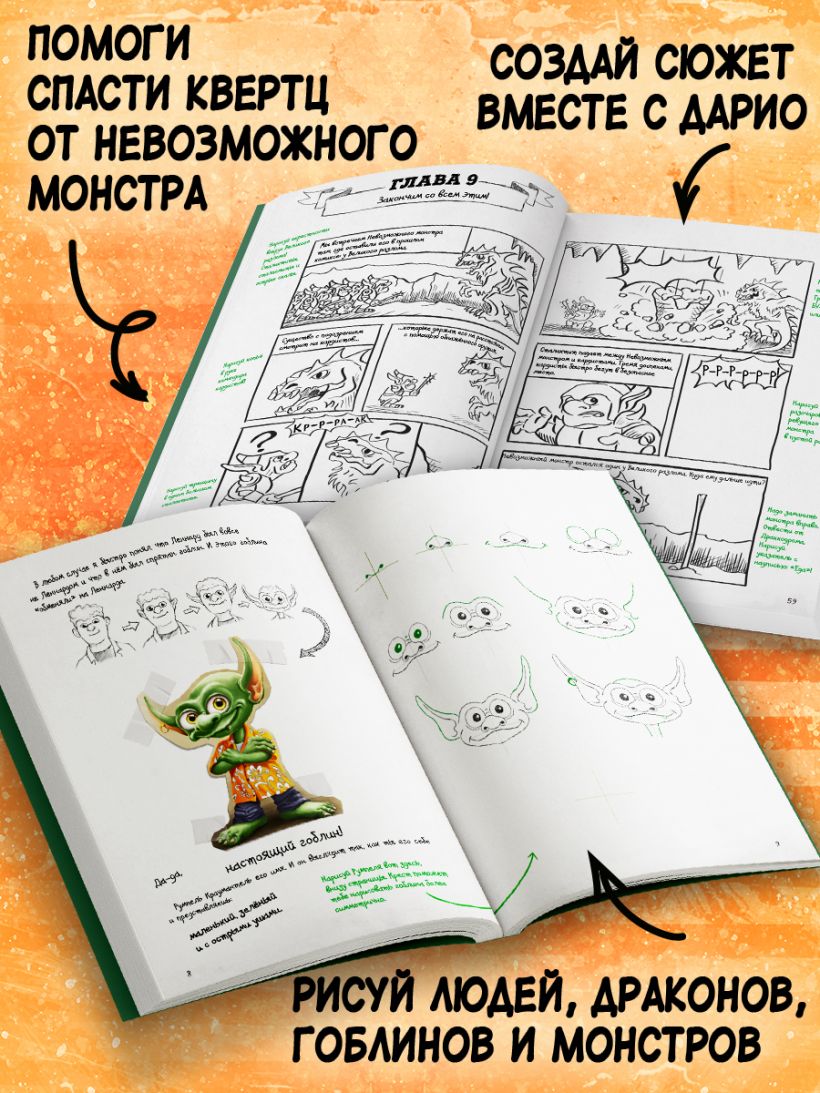 В этой книге я покажу, как сделать крутой комикс. Мы вместе научимся рисовать людей, драконов, гоблинов и разных фантастических существ. Так что скорее открывай книгу, учись рисовать и спаси Квертц!