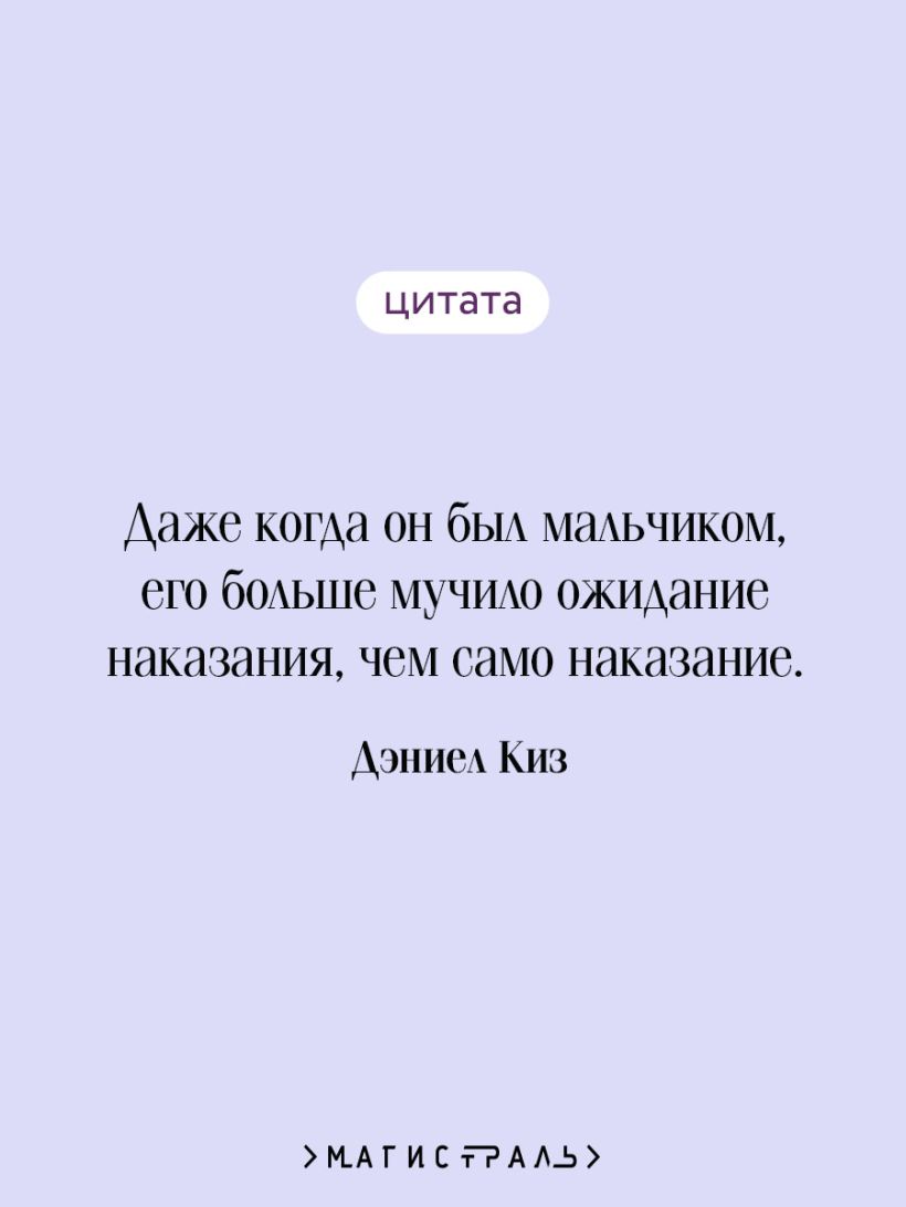 Дэниел Киз всегда интересовался пограничными состояниями, герои с раздвоением личности, с психическими расстройствами занимали его всегда — начиная с «Таинственной истории Билли Миллигана».
