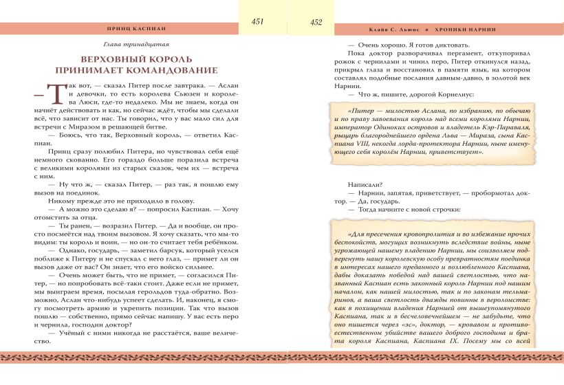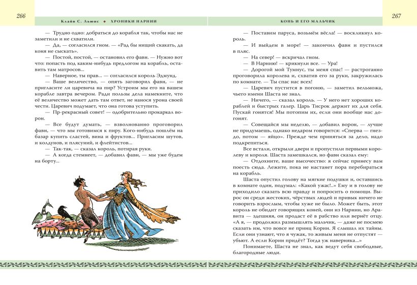 Издание в твёрдом переплёте с тиснением фольгой и частичным лаком. Плотная белая бумага. Чёткий, удобный для чтения шрифт. Классические чёрно-белые иллюстрации Паулин Бейнс. В книгу вошли все семь повестей всемирно известного цикла К. С. Льюиса «Хроники Нарнии» — о волшебной стране, в которой добро всегда торжествует. Много столетий назад великий лев Аслан создал Нарнию — чудесный мир, населённый диковинными существами, говорящими животными и танцующими деревьями. Четверо ребят из обычной семьи даже представить не могли, что дверь в волшебную страну скрывается в старом платяном шкафу, стоящем в пустой комнате. Но, шагнув однажды в пределы Нарнии, они уже не расстанутся с ней. А затем удивительный мир откроется и их друзьям — ведь «каждый находит то, что ищет на самом деле». «Придёт день, — пишет К. С. Льюис, — когда ты повзрослеешь настолько, чтобы снова начать читать сказки». И это действительно так. Знакомство с Нарнией очаровывает детей и возвращает взрослым веру в чудеса. Общий тираж «Хроник Нарнии» превышает 100 миллионов экземпляров. Повесть «Лев, колдунья и платяной шкаф» вошла в список «100 великих романов на английском языке» (по версии журнала «Тайм»), а «Последняя битва» удостоена медали Карнеги — самой престижной британской награды за детскую книгу. К сюжетам волшебных повестей постоянно обращаются режиссёры и продюсеры, привлекая миллионы зрителей во всём мире.