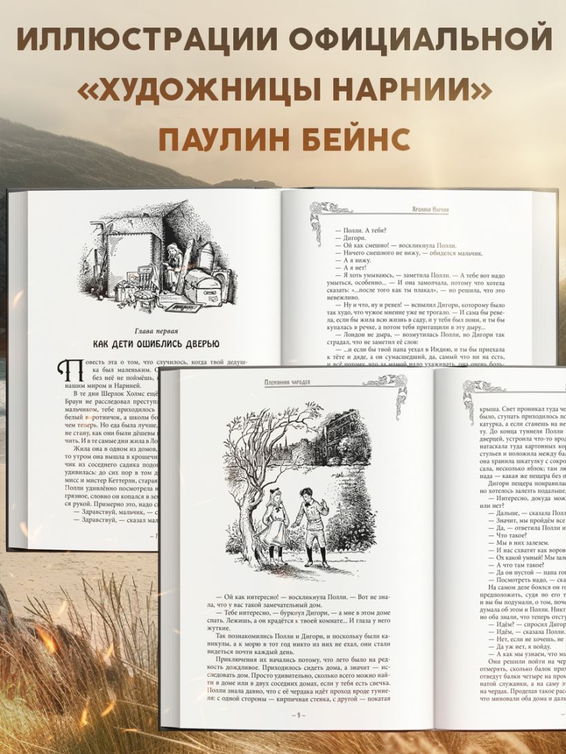 Иллюстрации Паулин Бейнс, которая официально признана «художником Нарнии», а также карты волшебной страны.