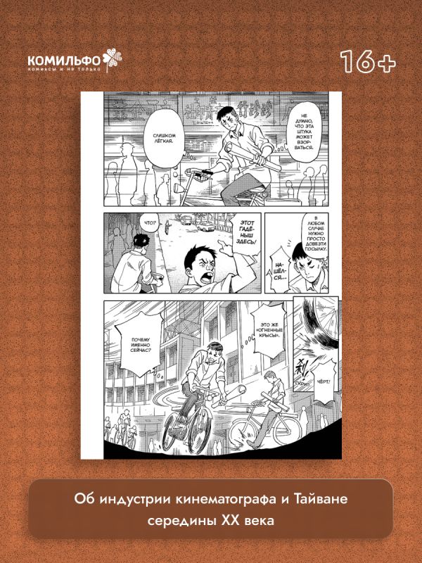 «Художник кинопостеров» — яркая работа Цзянь Цзячэна, лауреата премии японской International Manga Award. Это оригинальное прочтение жанра сёнэн, отлично передающее любовь автора к индустрии кинематографа и атмосферу Тайваня середины XX века.