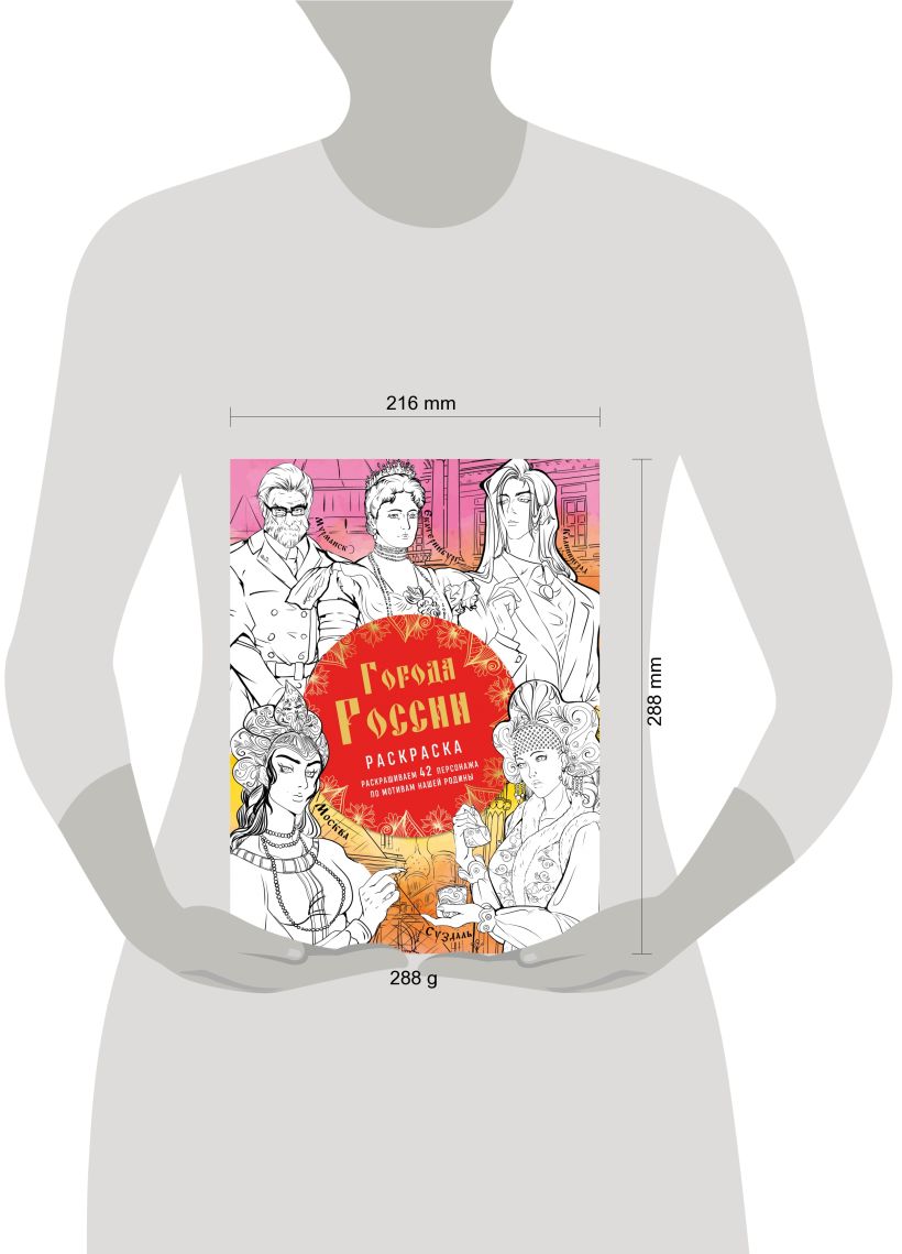 Под обложкой одной раскраски собрано 42 персонажа, каждый из которых передает особенности культуры и характерные черты разных городов России. На ее страницах вы встретите интеллигентный Калининград, красивую Самару, музыкальный Саратов, уважающий традиции Суздаль и других ярких и запоминающихся героев.