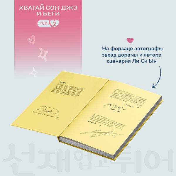 ЛУЧШАЯ ДОРАМА 2024 ГОДА ПО ВЕРСИИ TIMES! Дорама «Хватай Сон Джэ и беги» покорила сердца миллионов зрителей не только в Корее. Любители жанра во всем мире прильнули к экранам и переживали за судьбы главных героев Соль и Сон Джэ! Перед вами первый том сценария этой суперпопулярной дорамы. Щемящая сердце, трогательная романтическая история, которая подарит веру в настоящую любовь, над которой не властно даже время. 2023 год. Рю Сон Джэ — солист K-pop группы с бешеной популярностью и толпами поклонниц. Любое его желание исполняется в ту же секунду. Кажется, что еще нужно? Но за блеском и славой скрывается сложная и порой одинокая жизнь айдола. И однажды мир потрясет новость: сердце Сон Джэ остановилось. Его преданная фанатка Лим Соль в отчаянии просит судьбу вернуть его! Хоть это кажется невозможным, но вселенная откликается на ее мольбу! Девушка оказывается в прошлом, в 2008 году, где Сон Джэ — еще не обожаемая всеми звезда, а обычный парень, который учится в соседней школе и мечтает о карьере спортсмена. Соль получает шанс изменить его судьбу. Только чем больше она сближается с ним, тем яснее понимает: за жизнь Сон Джэ ей придется заплатить невероятную цену. И, возможно, эта цена — ее собственное счастье… Основные тропы: второй шанс, романтика, школа, путешествия во времени, K-pop айдолы, любовный треугольник, спорт, ностальгия, детектив. Идеально для поклонников корейских дорам «Демон», «Истинная красота». Подарочное нежное оформление в корейском стиле, белая бумага, цветная печать. Блок с кадрами из дорамы на мелованной бумаге. Обложка с эффектом софт-тач и технологией стерео-варио. Стерео-варио — это вид печати, позволяющий получить изображение, меняющееся в зависимости от угла зрения (две картинки в одной). На форзаце автографы звезд дорамы Пен У Сока (Сон Джэ) и Ким Хе Юн (Лим Соль), которые они дали специально для этого издания.