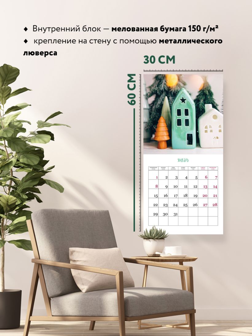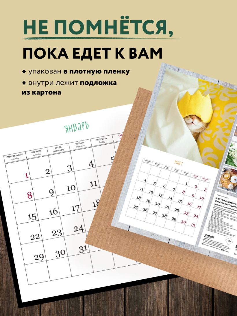 Наши настенные календари отличаются высоким качеством исполнения! Тщательно подобранные иллюстрации, напечатанные на глянцевой бумаге высочайшего качества, станут настоящим украшением дома, а в календарной сетке найдется место для ваших планов: большие клетки позволят делать записи и организовать свой год! В календаре также отмечены все государственные праздники.