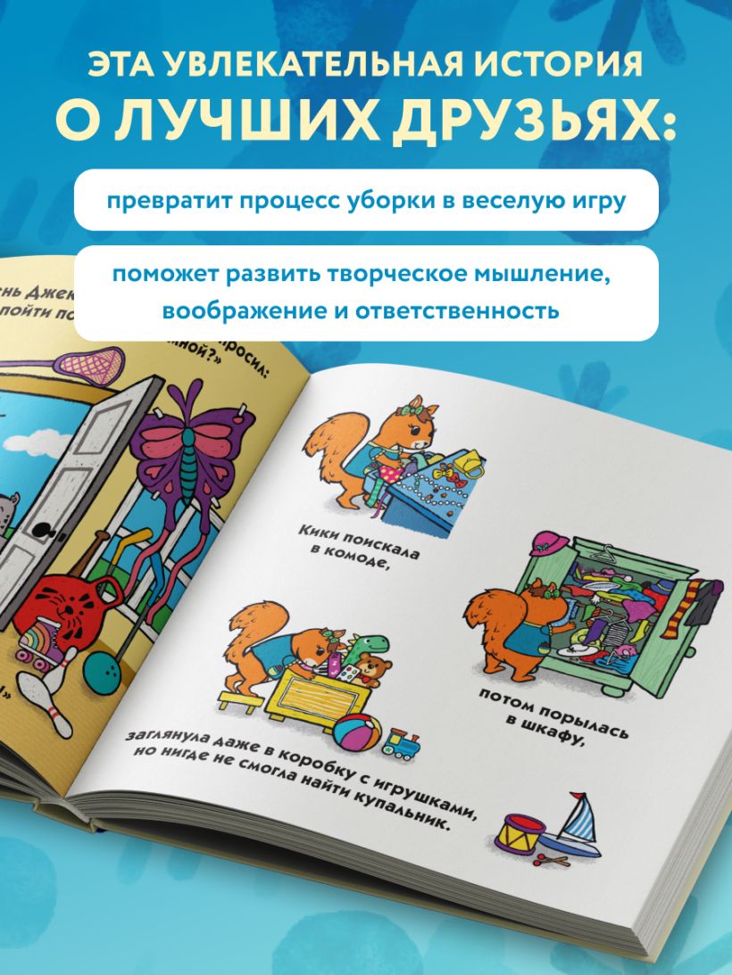 Вместе с Кики и Джеком ребенок научится убирать свои игрушки на место, избавляться от лишнего, складывать вещи в шкаф, поддерживать порядок в комнате, одновременно развивая творческое мышление, воображение и ответственность.