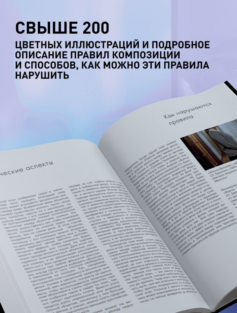 «Композиция в кино. Искусство визуального повествования: от общих правил до их нарушений» — это универсальное руководство, в котором свыше 200 цветных иллюстраций и подробное описание правил композиции и способов, как можно эти правила нарушить.