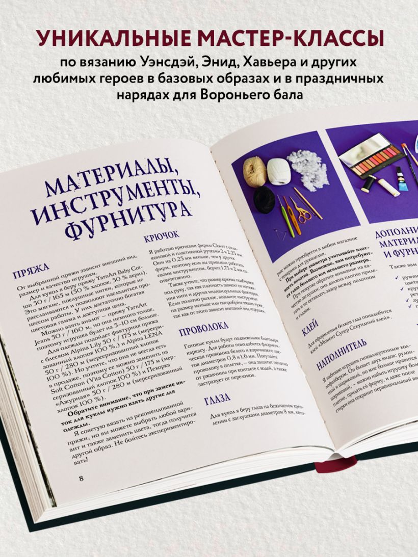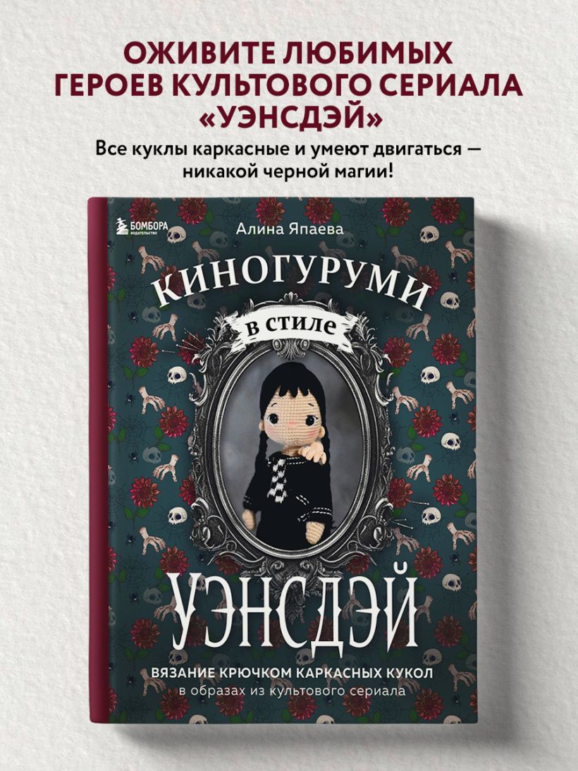 В ней вы найдете все, что нужно для того, чтобы научиться вязать каркасных кукол, которые умеют стоять, сидеть и принимать любые позы, легко и просто. А самое главное — вы будете осваивать вязание на примере любимых героев из сериала «Уэнсдэй»! Каждая кукла или артефакт — это уникальный образ, который вы создадите сами. А попутно проникнетесь атмосферой школы для «изгоев», побываете на Вороньем балу, познакомитесь с друзьями и недругами главной героини...