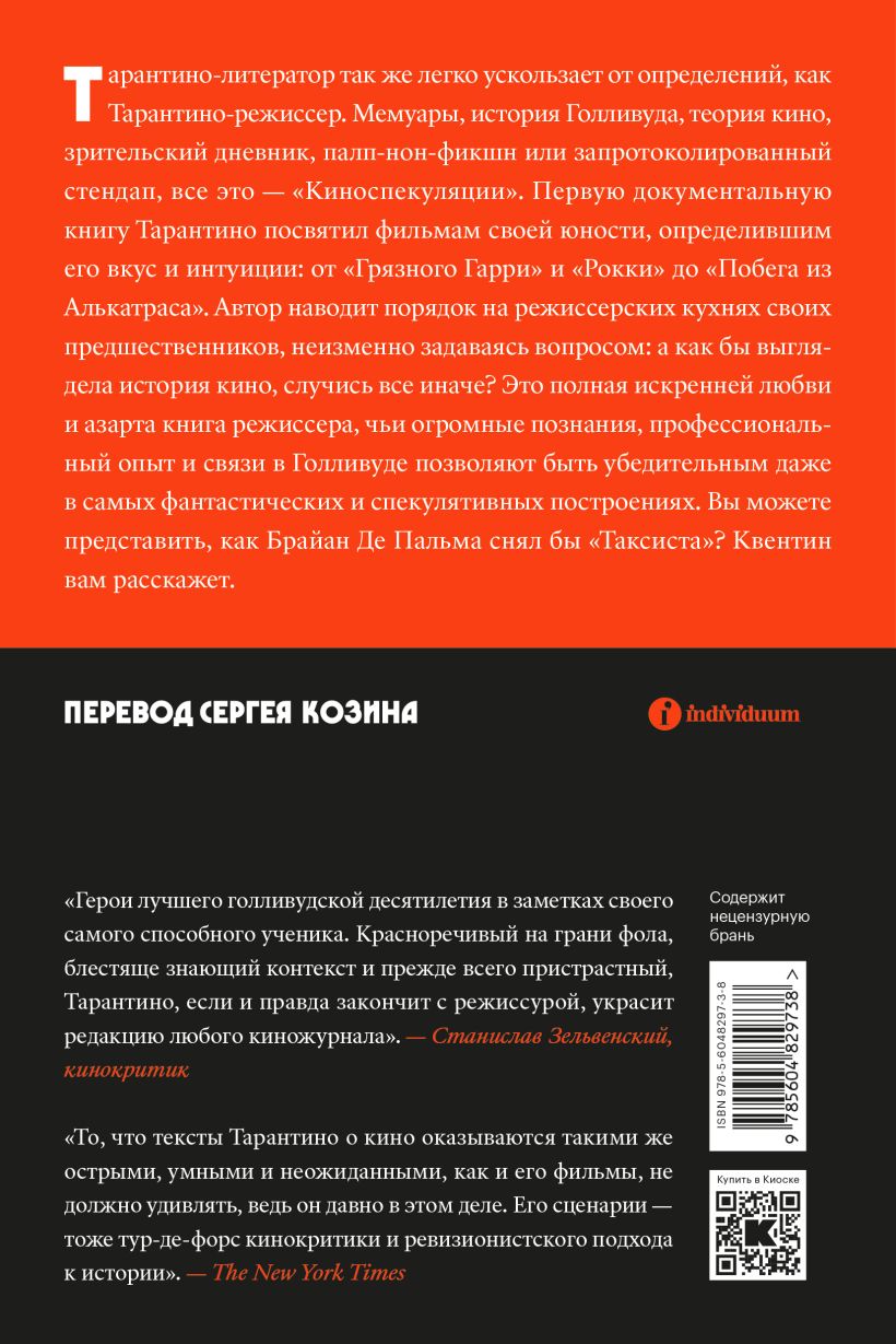 Это полная искренней любви и азарта книга режиссера, чьи огромные познания, профессиональный опыт и связи в Голливуде позволяют быть убедительным даже в самых фантастических и спекулятивных построениях. Вы можете представить, как Брайан Де Пальма снял бы «Таксиста»? Квентин вам расскажет.