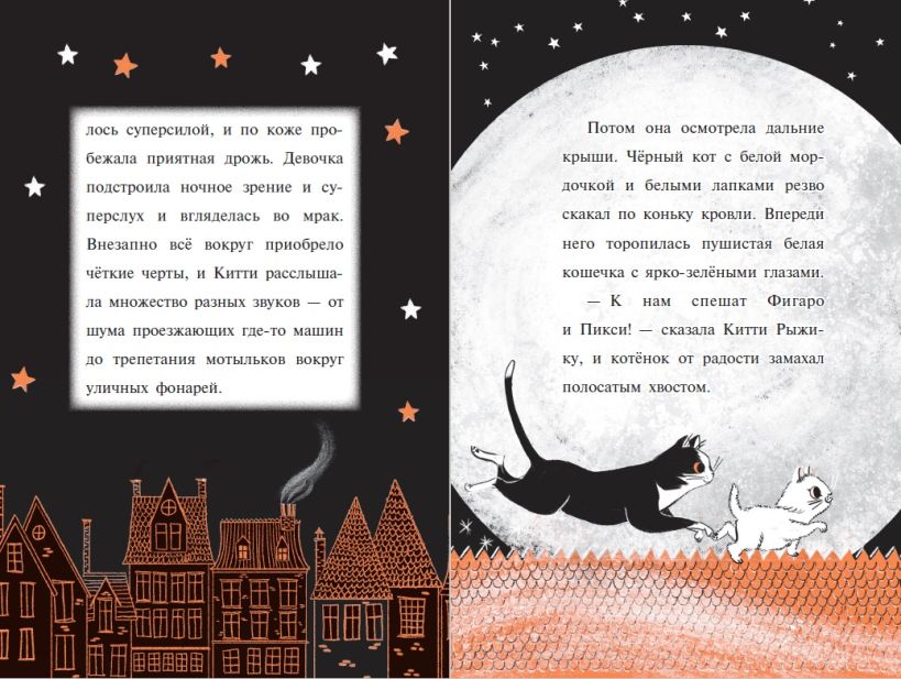 Книги о Китти переведены на 24 языка! Они учат детей верить в себя и ничего не бояться! Идеальный баланс между текстом и стильными чёрно-оранжевыми иллюстрациями, захватывающий сюжет и отличный слог — читать будет легко и весело. Очень красивое оформление: оранжевая фольга на обложке, плотная бумага и формат, идеально подходящий для маленького читателя. Понравится всем поклонникам серии «Изадора Мун»!