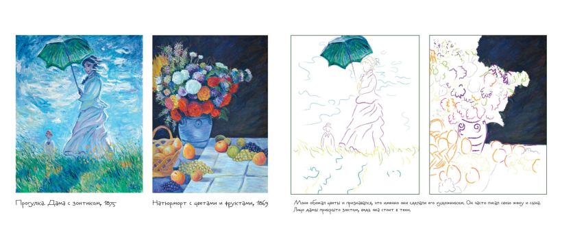 Перед вами раскраска по мотивам творчества французского художника Клода Моне. Раскройте свой талант и заполните цветом черно-белые пейзажи в духе импрессионизма.