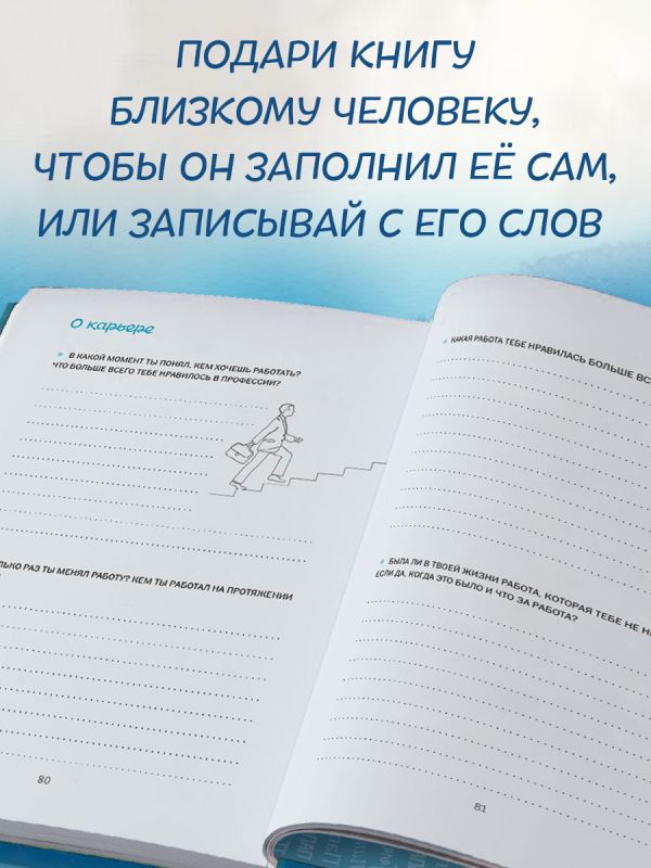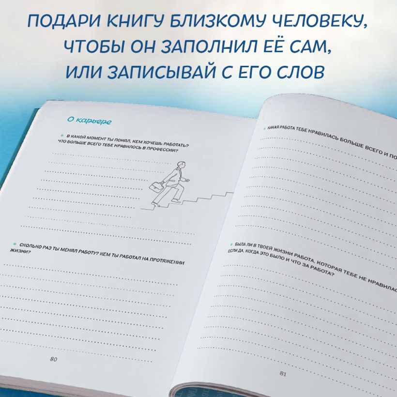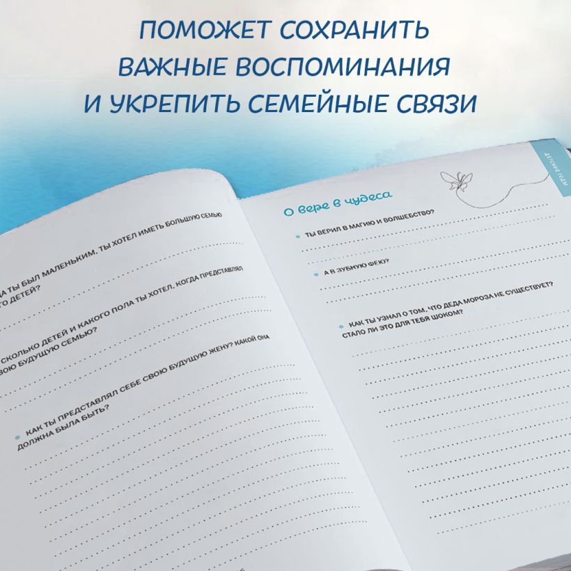 Сохраните важные воспоминания и даже спустя много лет вы сможете возвращаться к книге, перечитывать и дополнять, а однажды прочитать своим детям и внукам, чтобы и они тоже узнали, каким необычным и интересным человеком был их дедушка и прадедушка.