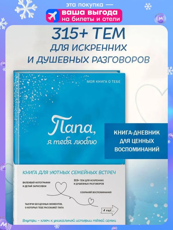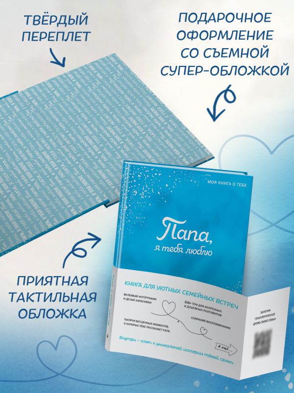 Книга «Папа, я тебя люблю!» — это не только идеальный подарок для близкого человека на Новый год, день рождения, 23 февраля или день отца, но и ваш проводник в мир психологии и саморазвития, ведь узнавая свои корни, мы узнаем и настоящих себя, а значит, вы сможете разобраться и в вопросах к себе, которые у всех нас возникают в течение жизни. Издание подойдет и тем, кто ищет семейный фотоальбом необычного формата, и понравится вам, если вы обращали внимание на бестселлеры «С тобой я дома», «К себе нежно».