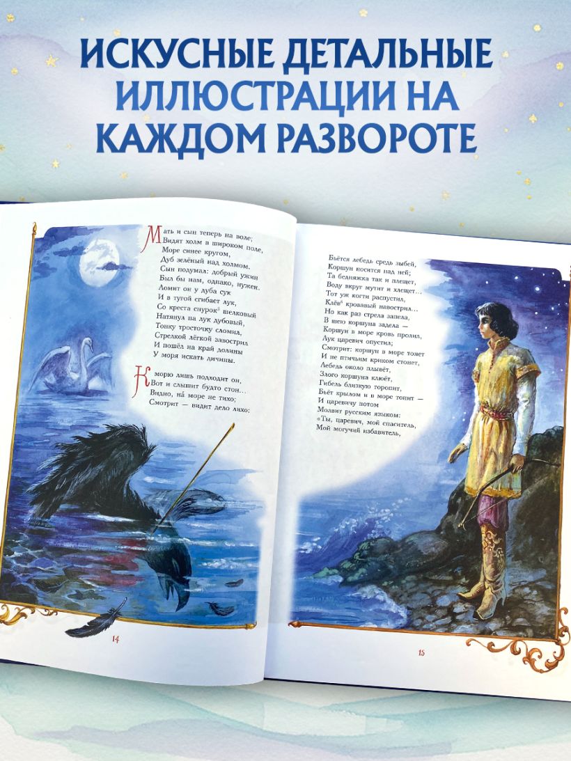 Великолепной чередой выходят на страницы этой книги любимейшие герои прекрасных пушкинских сказок: отважный князь Гвидон и прекрасная Царевна Лебедь, могущественная золотая рыбка и преданный королевич Елисей, хитроумный Балда и коварная Шамаханская царица. Насладиться чарующей, волшебной атмосферой читателям помогут изящные, яркие иллюстрации московской художницы Анны Власовой.