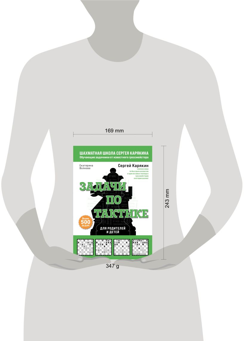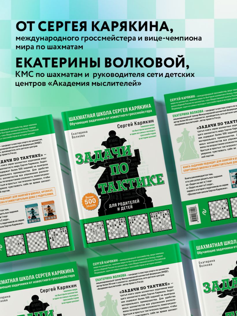 «Задачи по тактике» — третья книга серии шахматных задачников ведущего шахматиста мира Сергея Карякина. Задачник содержит более 500 заданий на закрепление знаний на мат в один и два хода и выигрыш материального преимущества. Для удобства юных шахматистов все упражнения расположены по возрастанию сложности, помогая разобраться в простых тактических приемах, чтобы уверенно чувствовать себя во время шахматной партии.