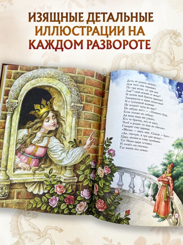 Звонкие, лёгкие, ритмичные строки стихотворной сказки Петра Ершова «Конёк-горбунок» звучат, словно перестук копытцев волшебного конька, и остаются в памяти на долгие-долгие годы после первого прочтения. Необыкновенные приключения простодушного Иванушки и его верного друга конька-горбунка на протяжении многих лет неизменно радуют детей и взрослых. Ведь они, как и должно быть в хорошей, доброй сказке, непременно заканчиваются хорошо! Классический фольклорный сюжет и яркие, насыщенные иллюстрации Игоря Егунова сделают эту книгу прекрасным подарком к любому празднику.