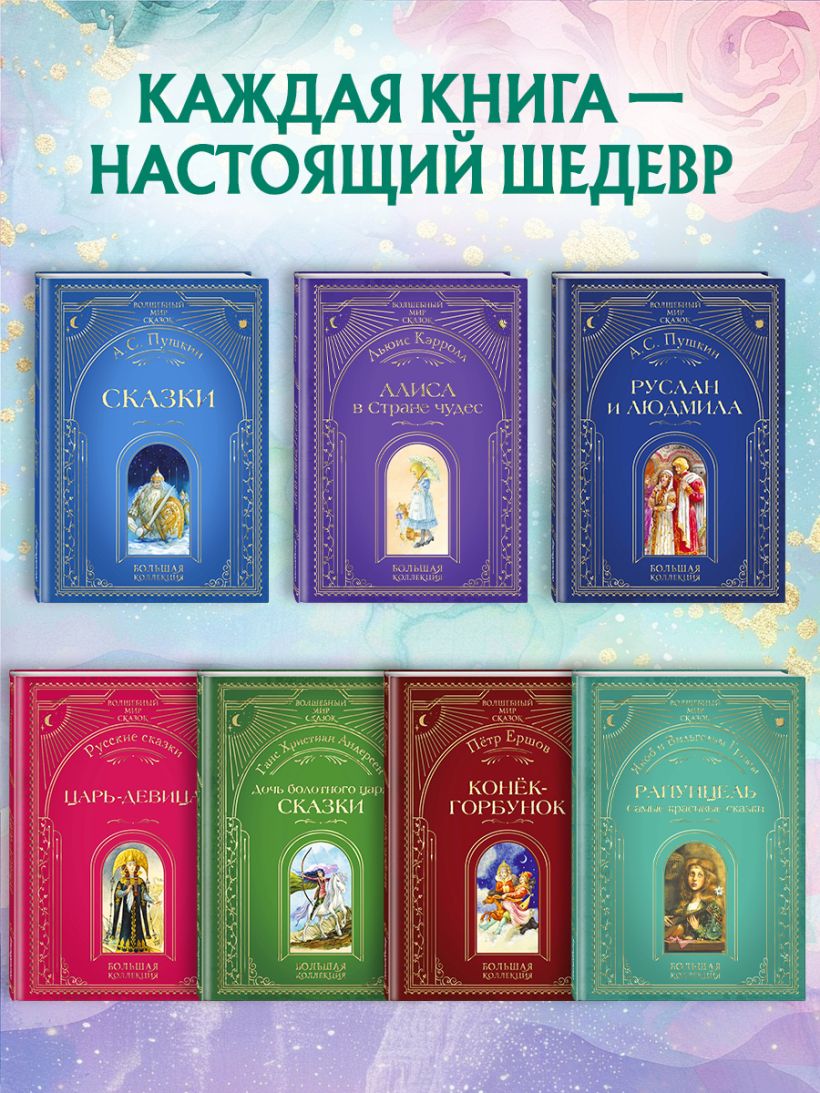 Книги серии «Волшебный мир сказок. Большая коллекция» — это приглашение в удивительное путешествие по таинственным мирам, ставшим зримыми и осязаемыми благодаря искусству художников. Лучшие мастера книжной иллюстрации подарят вам незабываемые впечатления от встречи со сказкой.