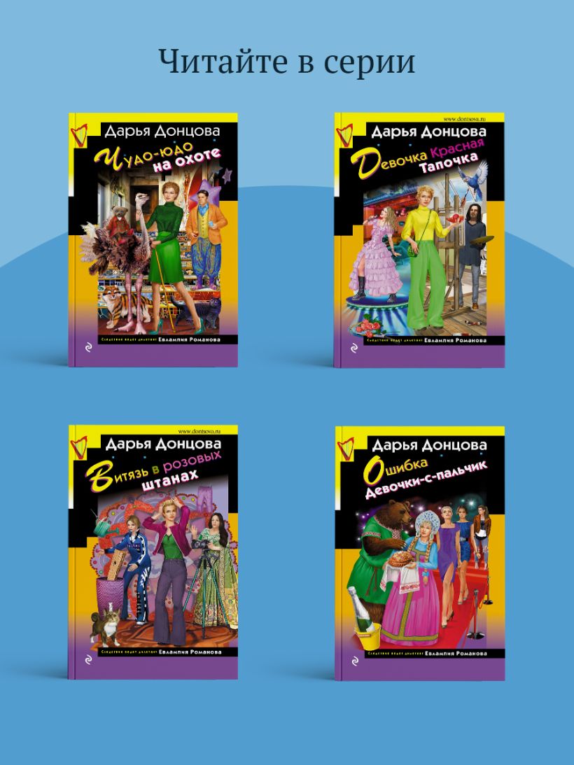 «Домик тетушки лжи (формат клатчбук)» Впервые один из первых и любимых романов Донцовой в модном формате «Клатчбук». Оптимальный формат в твердой обложке. 13-я книга из цикла «Любительница частного сыска Даша Васильева». Воистину жизнь полна чудес! Особенно у любительницы частного сыска Даши Васильевой. Погоревав о внезапной смерти Поли, дочери своей подруги, Даша явилась в морг, чтобы забрать тело. А там ей сообщили, что девушка… ожила. Оказывается, она просто была в коматозном состоянии. И смех, и слезы! Теперь в Дашином загородном доме появился невостребованный гроб, в котором… спит питбуль. А потом случилось ужасное — Поля все-таки погибла, не справившись с управлением чужой машиной. И Даша сразу же начинает поиски убийцы, ведь до этого в девушку стреляли, а в ее машине взорвалась сокурсница. Но милиция считает все случившееся простым совпадением… Дарья Донцова — самый популярный и востребованный автор в нашей стране, любимица миллионов читателей. В России продано более 200 миллионов экземпляров ее книг. Ее творчество наполняет сердца и души светом, оптимизмом, радостью, уверенностью в завтрашнем дне! «Донцова невероятная работяга! Я не знаю ни одного другого писателя, который столько работал бы. Я отношусь к ней с уважением, как к образцу писательского трудолюбия. Женщины нуждаются в психологической поддержке и получают ее от Донцовой. Я и сама в свое время прочла несколько романов Донцовой. Ее читают очень разные люди. И очень занятые бизнес-леди, чтобы на время выключить голову, и домохозяйки, у которых есть перерыв 15—20 минут между отвести-забрать детей». — Галина Юзефович, литературный критик «Бассейн с крокодилами (формат клатчбук)» Впервые один из первых и любимых романов Донцовой в модном формате «Клатчбук». Оптимальный формат в твердой обложке. 9-я книга из цикла «Любительница частного сыска Даша Васильева». Даша Васильева очнулась в горящей комнате. На софе рядом с ней лежал обнаженный мужчина. Вглядевшись, она поняла, что это ее шеф Игорь Марков. Он был мертв… Чтобы доказать свою непричастность к смерти Маркова, Даша должна найти подлинных убийц. Пытаясь замести следы, они убирают всех, кто мог бы их разоблачить. Под угрозой вся Дашина семья. Но убийцы еще не знают, что их противник не хрупкая и беззащитная женщина, а опытный частный детектив, за плечами которой не одно распутанное дело… Дарья Донцова — самый популярный и востребованный автор в нашей стране, любимица миллионов читателей. В России продано более 200 миллионов экземпляров ее книг. Ее творчество наполняет сердца и души светом, оптимизмом, радостью, уверенностью в завтрашнем дне! «Донцова невероятная работяга! Я не знаю ни одного другого писателя, который столько работал бы. Я отношусь к ней с уважением, как к образцу писательского трудолюбия. Женщины нуждаются в психологической поддержке и получают ее от Донцовой. Я и сама в свое время прочла несколько романов Донцовой. Ее читают очень разные люди. И очень занятые бизнес-леди, чтобы на время выключить голову, и домохозяйки, у которых есть перерыв 15—20 минут между отвести-забрать детей». — Галина Юзефович, литературный критик «Экстрим на сером волке (формат клатчбук)» Впервые один из первых и любимых романов Донцовой в модном формате «Клатчбук». Оптимальный формат в твердой обложке. 23-я книга из цикла «Л