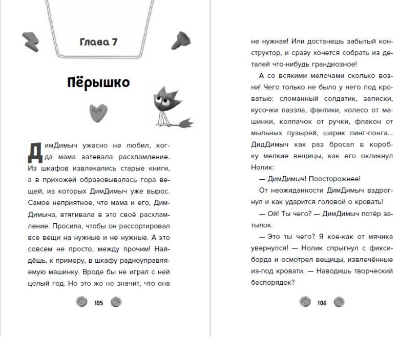 Яркая обложка, плотная бумага, чёрно-белые иллюстрации и цветные вклейки с персонажами.