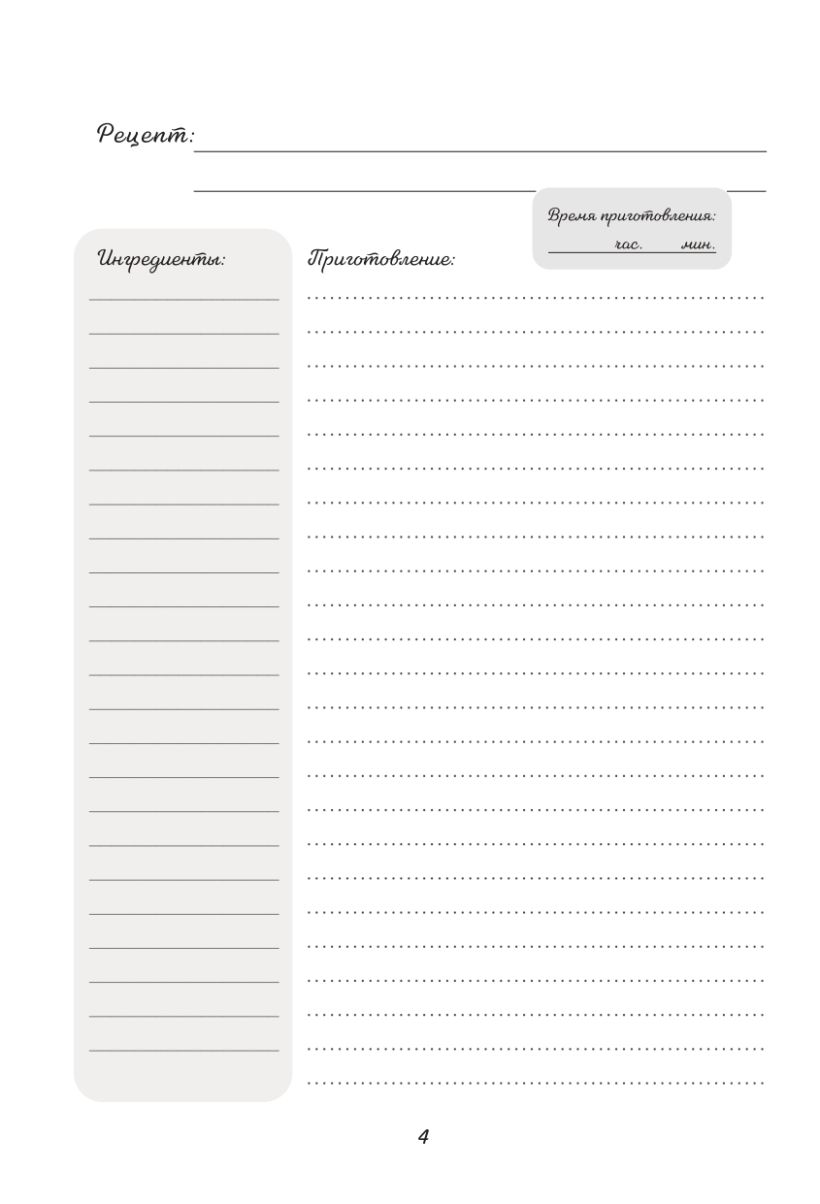 Красивая по оформлению, легкая по весу, доступная по цене и нужная для тех, кто любит записывать рецепты, услышанные или увиденные у родных, подруг или в интернете. Новые оформления позволят выбрать книгу для записи рецептов, наиболее понравившуюся вам, чтобы оставить для себя или подарить близким и друзьям. Готовьте с удовольствием!