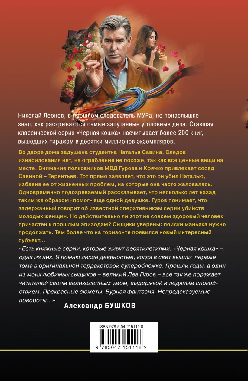 Николай Леонов, в прошлом следователь МУРа, не понаслышке знал, как раскрываются самые запутанные уголовные дела. Поэтому каждая его книга — это правдивая захватывающая история с непредсказуемой интригой и неожиданным финалом. Главный герой этих книг — полковник Лев Гуров, сыщик высокого класса, к тому же с массой положительных человеческих качеств. Его уважают друзья, боятся враги и любят женщины. Он — настоящий отечественный супермен. Романы о Льве Гурове вот уже сорок лет неизменно привлекают поклонников отечественного детектива. Ставшая классической серия «Черная кошка» насчитывает более 200 книг, вышедших тиражом в десятки миллионов экземпляров.