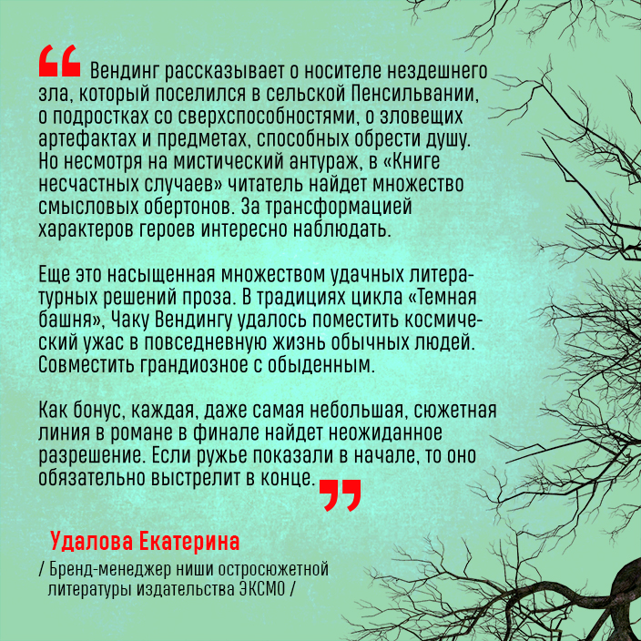 Благодаря книге Вендига я перенесся в золотой век ужаса, к романам, которые любил мальчишкой. В этой жесткой и задушевной, многослойной и воодушевляющей книге так приятно тонуть. – Дэн Чаон