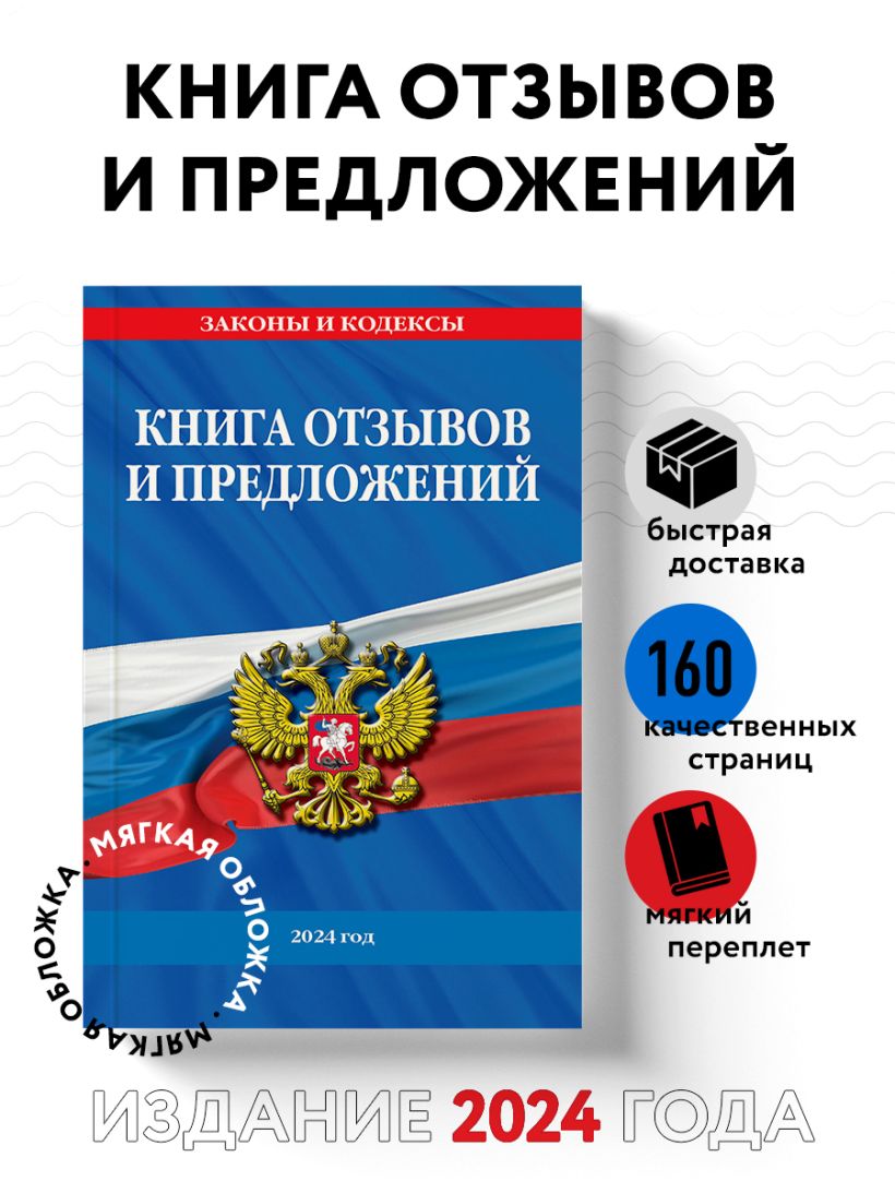Книга отзывов и предложений – необходимый инструмент обратной связи с клиентом на предприятиях розничной торговли и сферы услуг, предназначена для быстрого реагирования на нарушения в обслуживании. Представленная вашему вниманию книга соответствует всем нормам законодательства: пронумерована и скреплена, содержит необходимые для написания отзывов бланки. Такая книга, исписанная комплиментами посетителей, будет отличной рекламой для заведения.