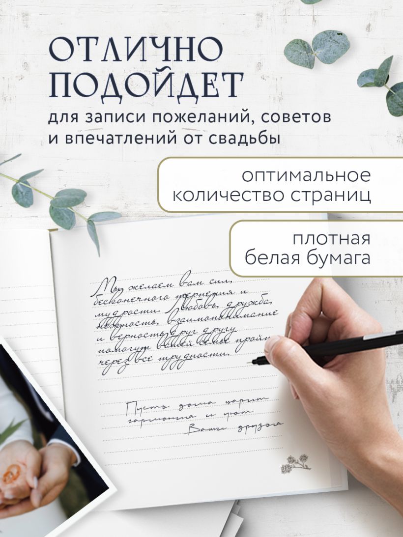 Этот блокнот предназначен для записи пожеланий и важных слов в свадебный день. Он станет замечательным подарком для пары, желающей сохранить воспоминания о своем торжестве на долгие годы. Гости могут оставить свои пожелания, впечатления о свадьбе, рассказать о семейных традициях и поделиться советами для счастливой семейной жизни.