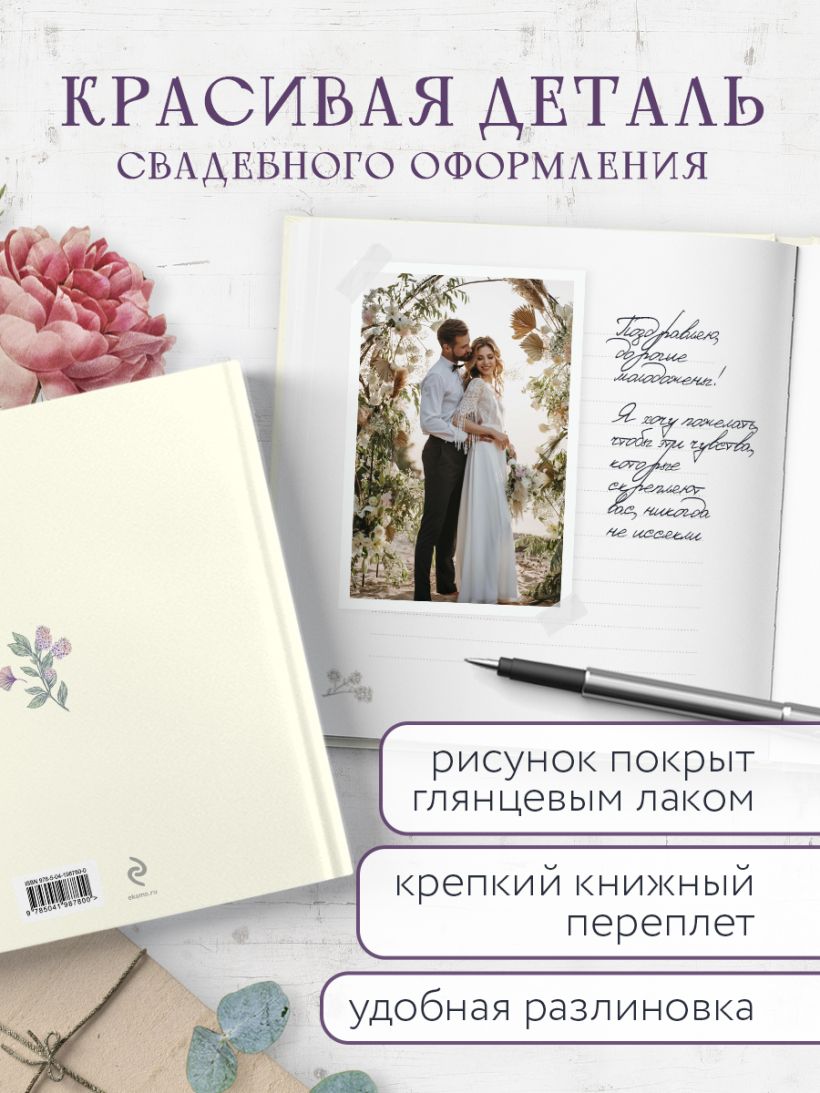 Этот блокнот предназначен для записи пожеланий и важных слов в свадебный день. Он станет замечательным подарком для пары, желающей сохранить воспоминания о своем торжестве на долгие годы. Гости могут оставить свои пожелания, впечатления о свадьбе, рассказать о семейных традициях и поделиться советами для счастливой семейной жизни.