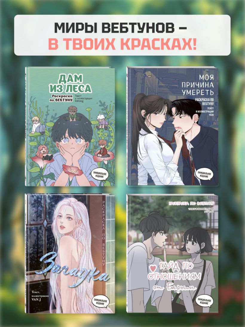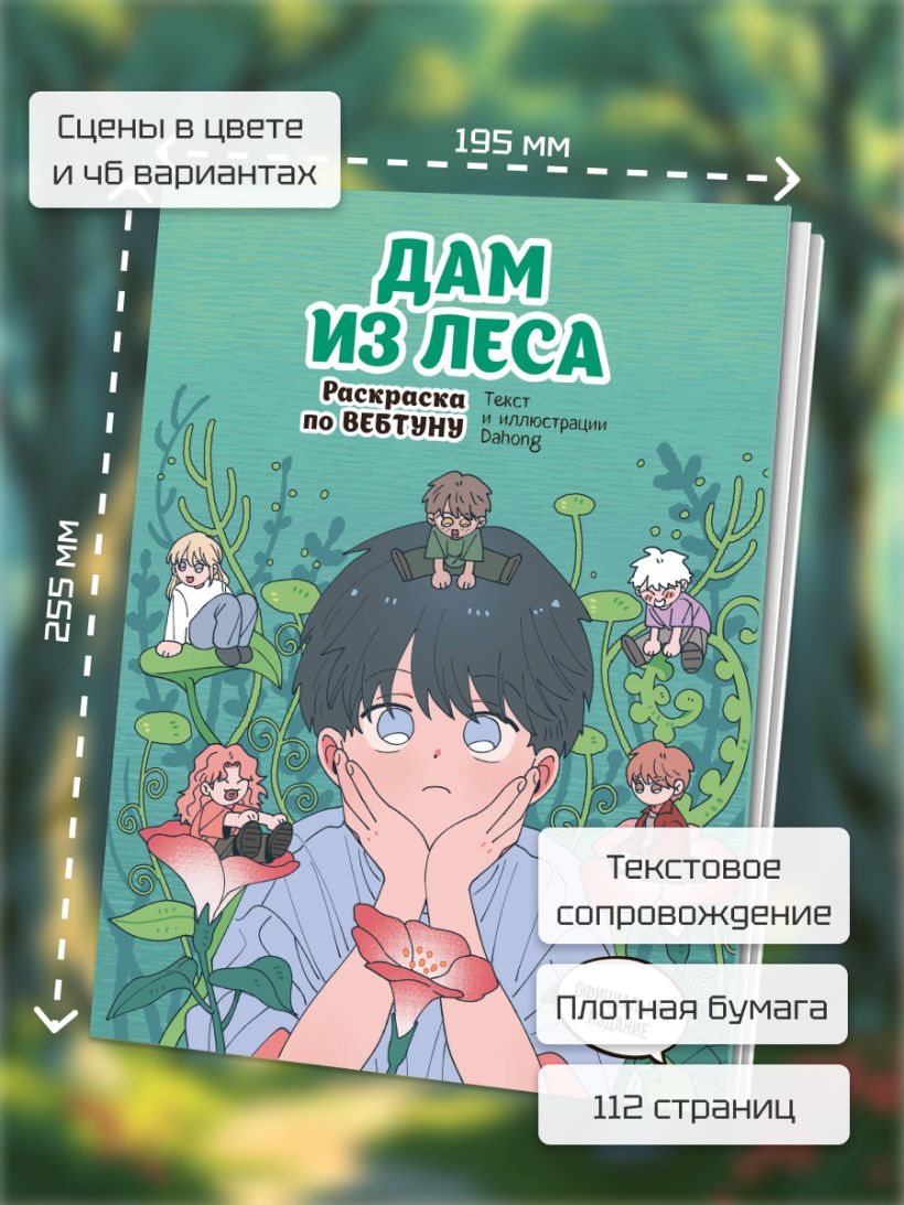 «Дам из леса. Раскраска по вебтуну» — это сборник из 52 атмосферных моментов популярного вебтуна «Дам из леса». Действие истории разворачивается в постапокалиптическом мире, а её уютный стиль и тёплые иллюстрации давно покорили сердца читателей.