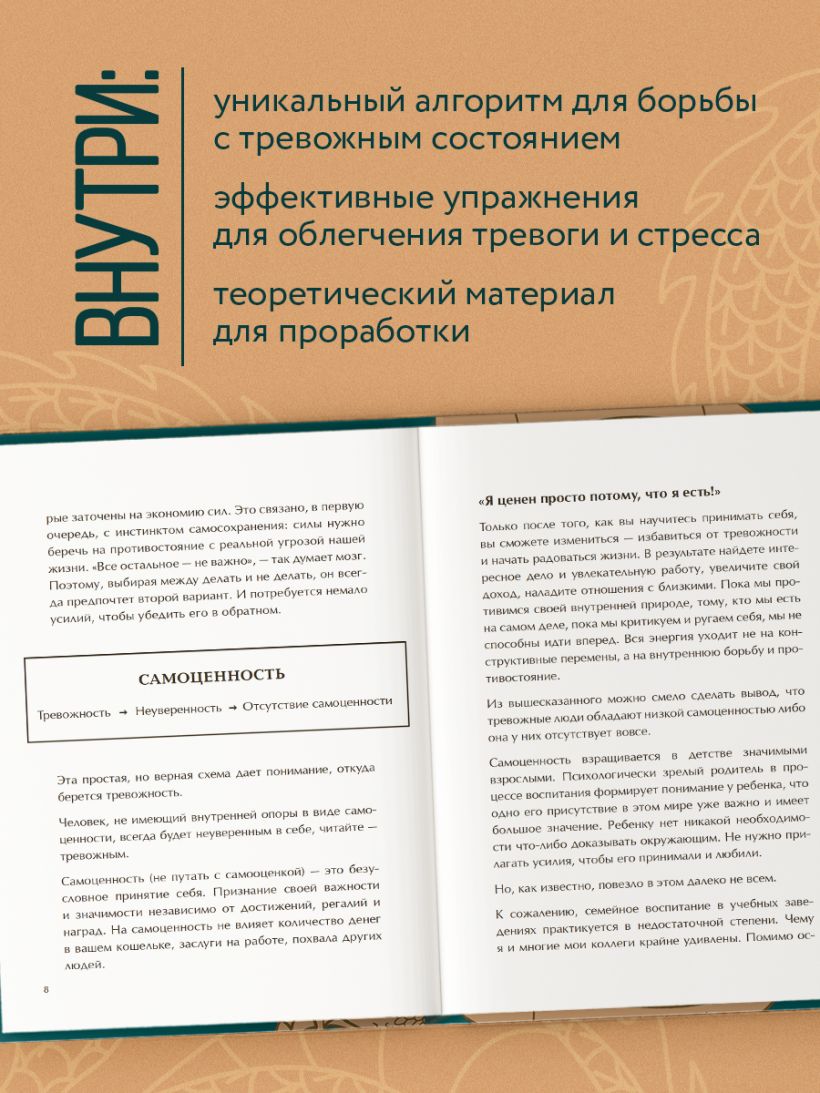 - Описание тревоги с психологической точки зрения и уникальный алгоритм для борьбы с тревожными состояниями.