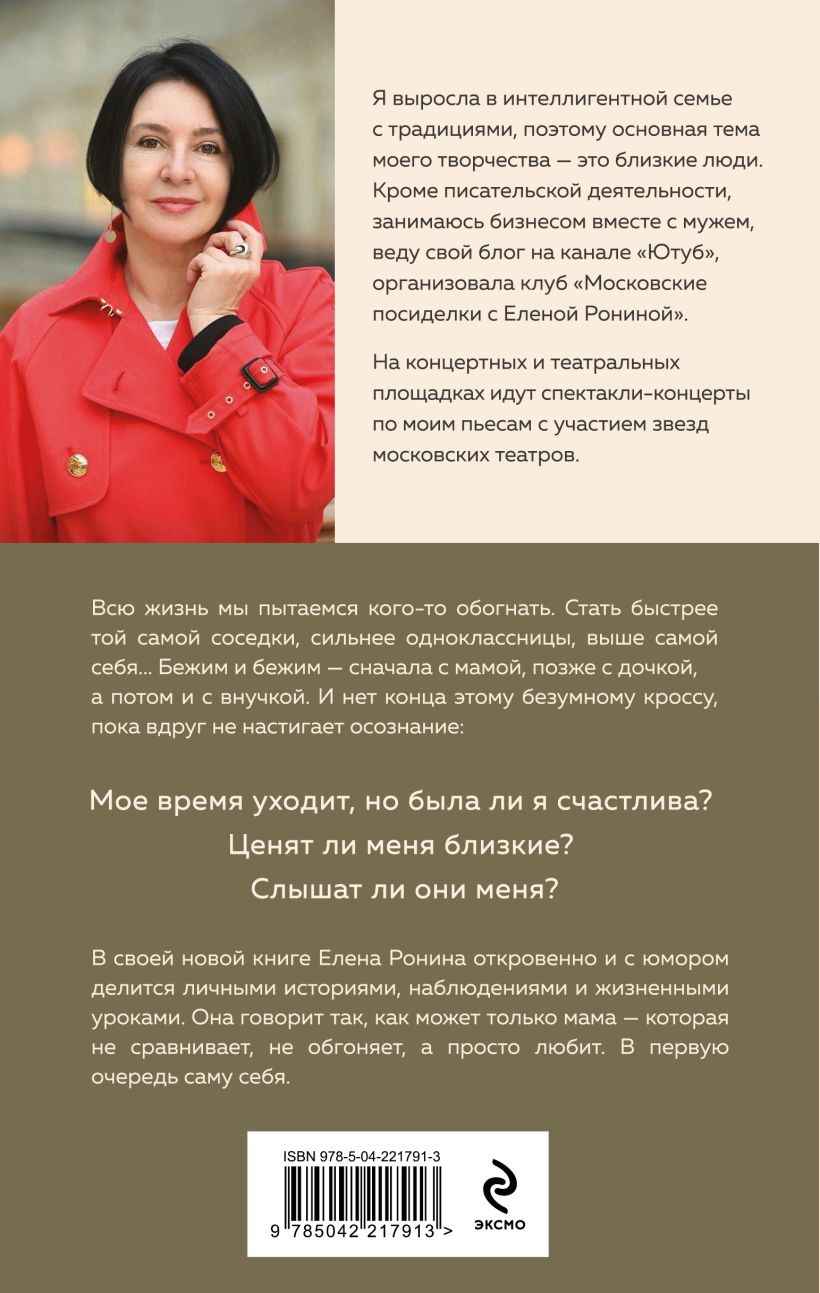 В своей новой книге Елена Ронина, откровенно и с юмором, делится личными историями, наблюдениями и жизненными уроками. Она говорит так, как может только мама — которая не сравнивает, а просто любит.