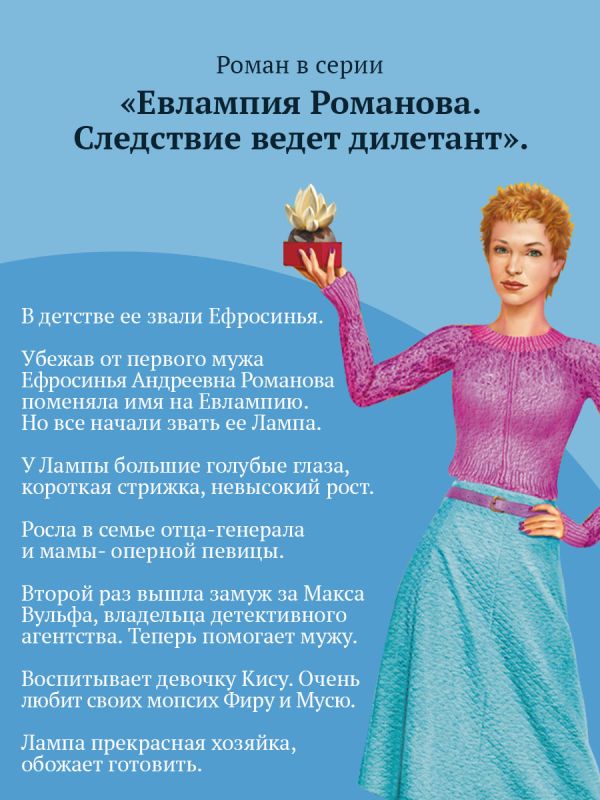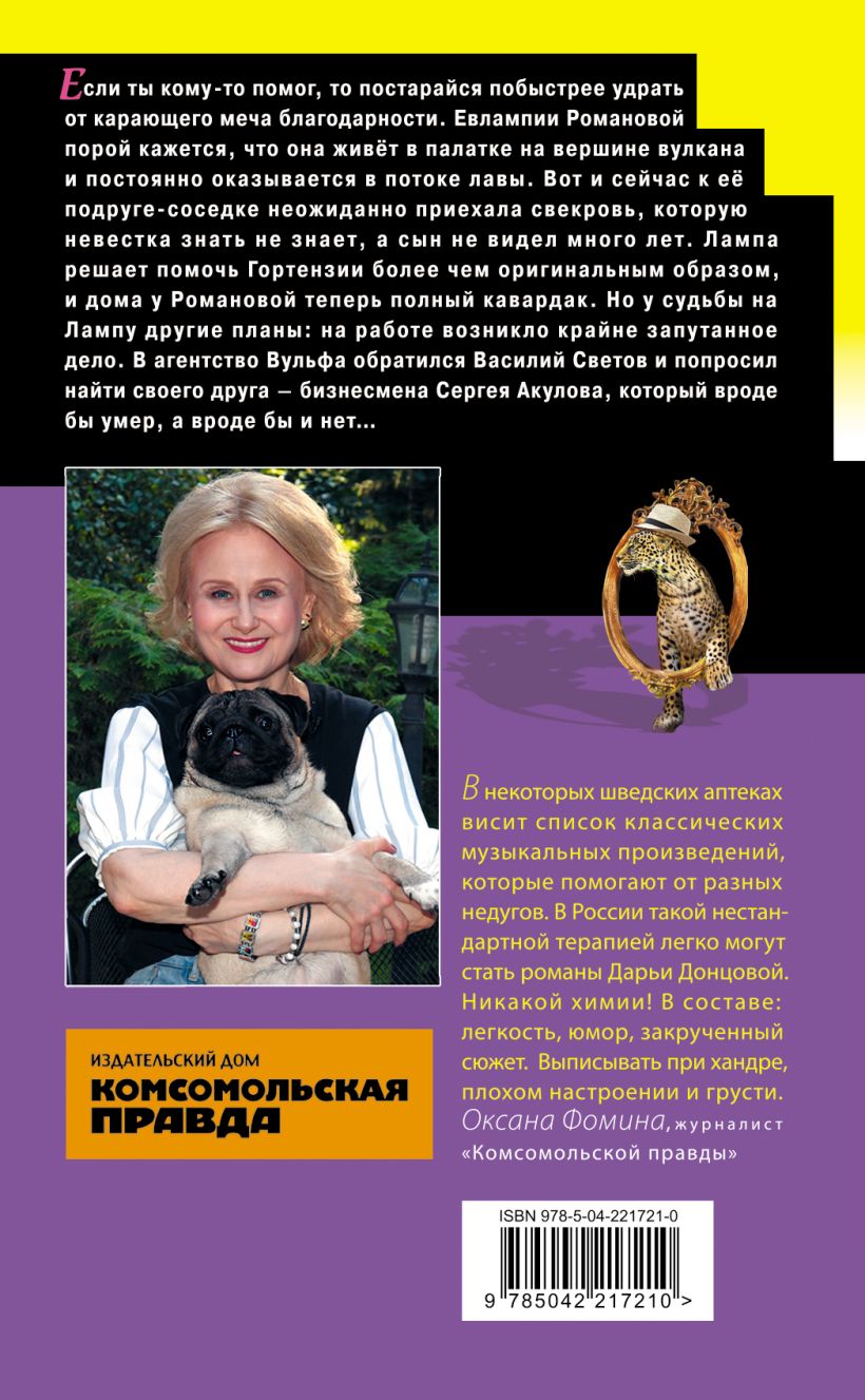 Если ты кому-то помог, то постарайся побыстрее удрать от карающего меча благодарности. Евлампии Романовой порой кажется, что она живет в палатке на вершине вулкана и постоянно оказывается в потоке лавы. Вот и сейчас к ее подруге соседке неожиданно приехала свекровь, которую невестка знать не знает, а сын не видел много лет. Лампа решает помочь Гортензии более чем оригинальным образом, и дома у Романовой теперь полный кавардак. Но у судьбы на Лампу другие планы: на работе возникло крайне запутанное дело. В агентство Вульфа обратился Василий Светов и попросил найти своего друга — бизнесмена Сергея Акулова, который вроде бы умер, а вроде бы и нет…