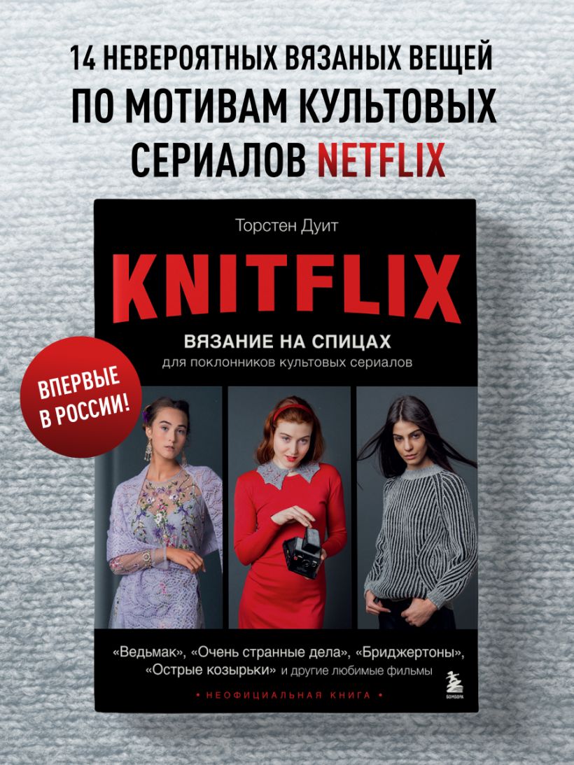 Уютный вечер в кресле со спицами в руках за просмотром любимого сериала Netflix — идеальное сочетание! «Ведьмак», «Очень странные дела», «Бриджертоны», «Острые козырьки» и другие любимые фильмы, а теперь еще и красивые вязаные проекты, которые будут напоминать о любимом кино, где бы вы ни были и которые вы свяжете сами! Незаменимая книга для любителей сериалов и вязания!