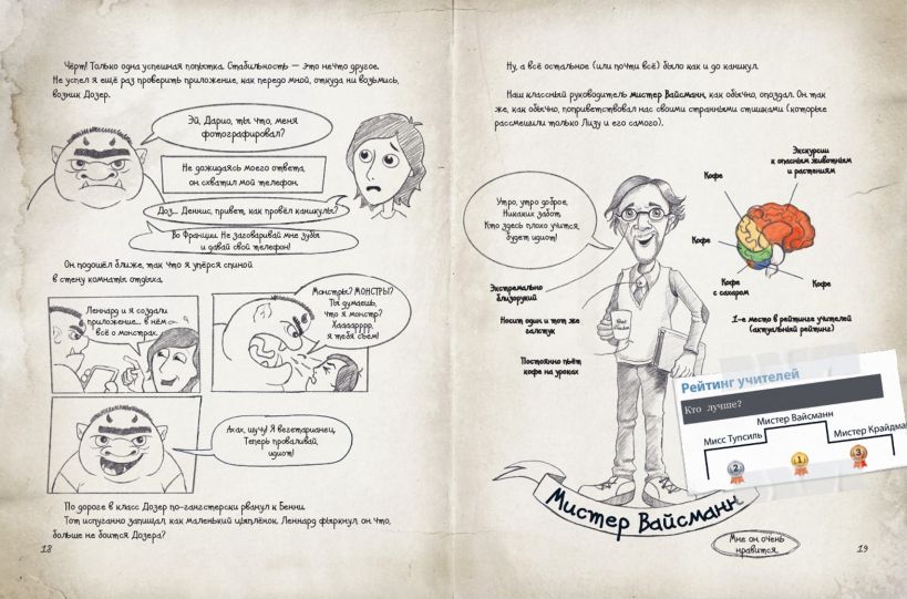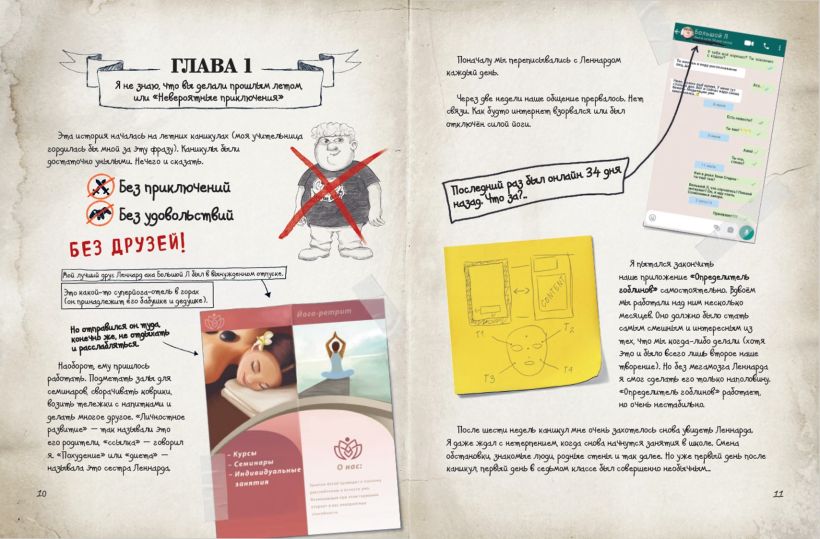 Уникальность книги в необычной подаче — история написана в формате дневника со множеством зарисовок и «доказательств» из приключений главного героя, то есть своего рода дневник-скетчбук. Увлекательный сюжет, сочетающий как художественное повествование, так и комиксовую манеру + сотни стильных иллюстраций = затягивающее чтение, невозможно оторваться!