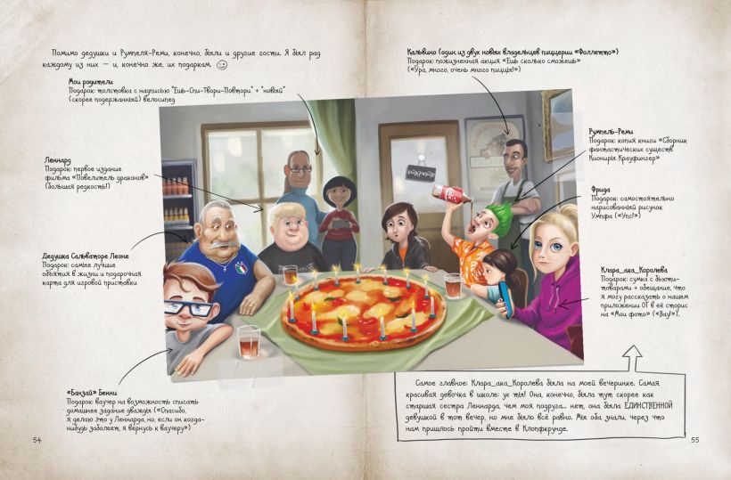 Книга легко может подойти на подарок благодаря своему стильному, современному оформлению — твердый переплет, обложка с вырубкой, необычный макет с «живыми» иллюстрациями.