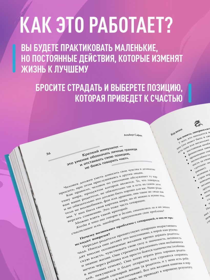 Альберт Сафин — психолог, сертифицированный коуч, бизнес-тренер и лектор, которого смотрят более 590 тысяч подписчиков на YouTube. И это число постоянно растет. В своей четвертой книге он объясняет, что счастье — это комплексное чувство, зависящее от каждой сферы вашей жизни. Поэтому не получится быть счастливым, если вы, например, не чувствуете удовлетворения от работы или отношений. Прочитав эту книгу, вы:
