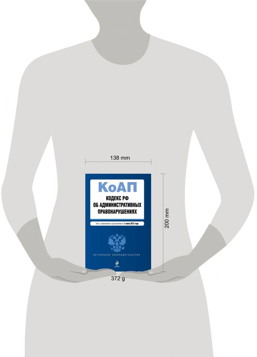 Настоящее издание содержит текст Кодекс Российской Федерации об административных правонарушениях с изменениями и дополнениями на 1 июля 2012 года с удобной навигацией. Если есть изменения, вступающие в силу позднее, то вместе с редакцией нормы, действующей на эту дату, приводится норма в новой редакции и указывается дата, с которой она вступает в силу.