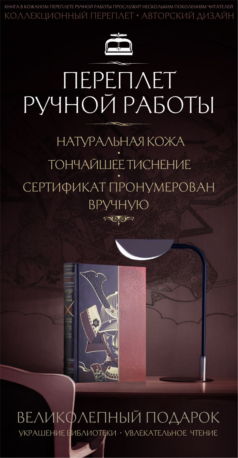 "Кодекс самурая. Хагакурэ Бусидо. Книга Пяти Колец". Книга в коллекционном кожаном переплете ручной работы