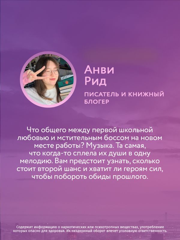 «Что общего между первой школьной любовью и мстительным боссом на новом месте работы? Музыка. Та самая, что когда-то сплела их души в одну мелодию. Вам предстоит узнать, сколько стоит второй шанс и хватит ли героям сил, чтобы побороть обиды прошлого». — Анви Рид, писатель и книжный блогер
