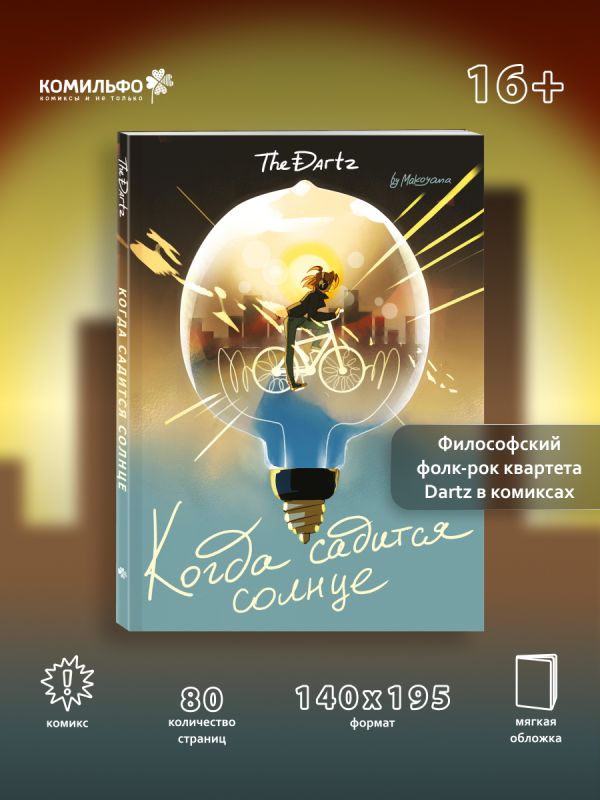 The Dartz — философский фолк-рок-квартет из Петербурга и Москвы. Они выпустили одиннадцать альбомов, и, даже если вы их не знаете, то наверняка слышали песню о пожаре Катти Сарк, или страшилку «Огни Самайна», или могучий припев «Когда позовёт тебя море». Перед вами сборник комиксов по десятому альбому The Dartz «Trevlig Resa» — лиричному сборнику о силе воображения, путешествиях и поиске себя.