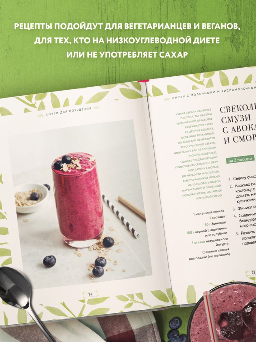 В книге собрано более 55 рецептов, подходящих для вегетарианцев и веганов, для тех, кто придерживается низкоуглеводной диеты или просто сократил потребление сахара, варианты на основе молочных и кисломолочных продуктов, а также на растительном молоке. Сделайте свою жизнь комфортнее с книгой «Смузи и коктейли для похудения».