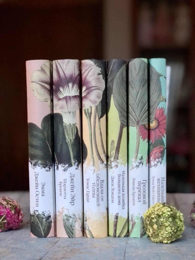 Коллекция элегантной классики — это пронзительная нежность, это сад, который шагнул к вам на книжную полку. Корешки коллекции собирают на полке цветочный орнамент.