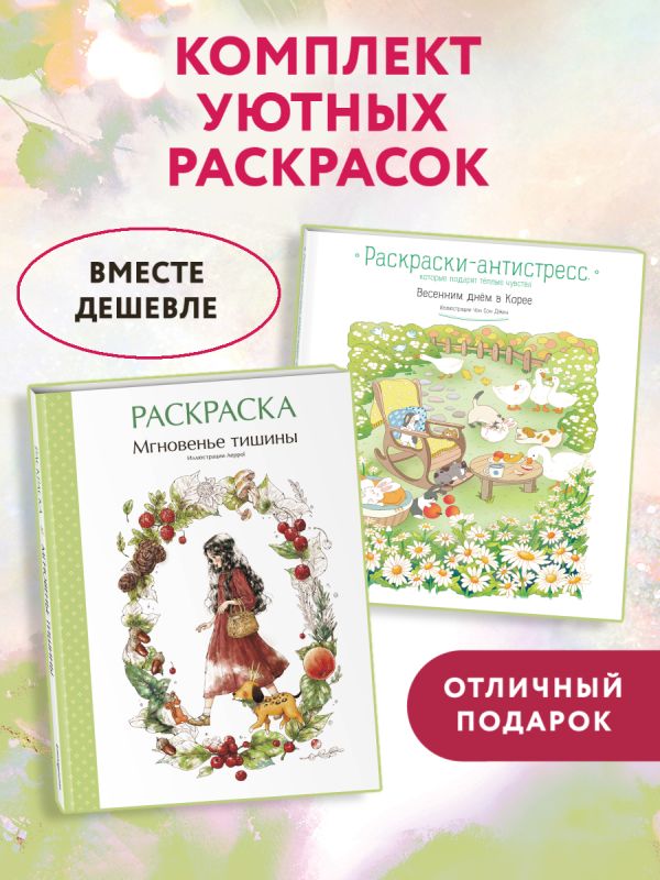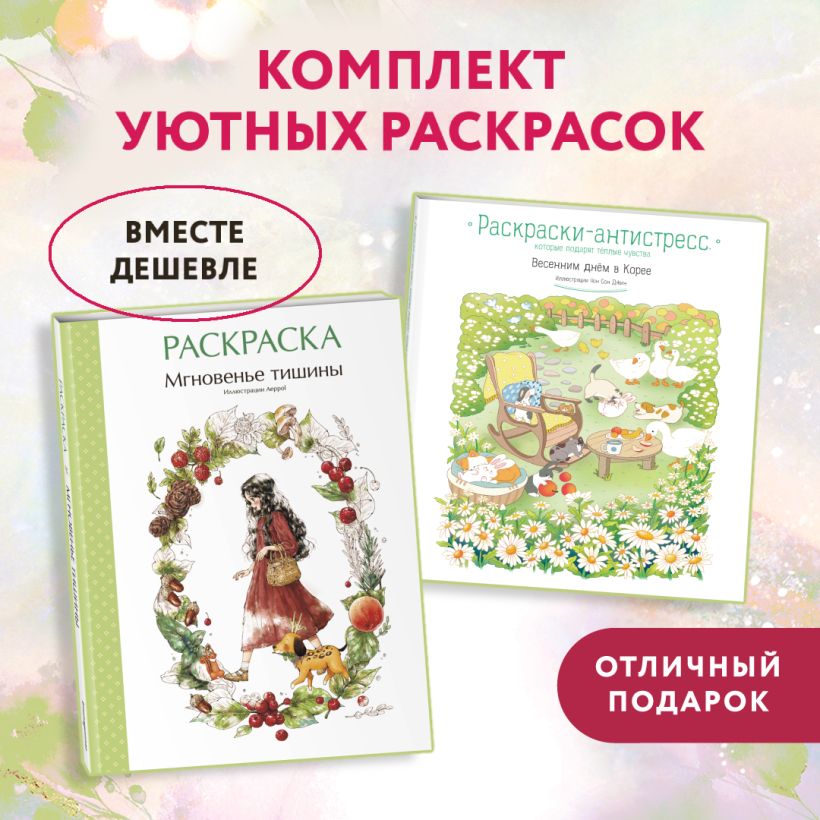 Комплект из 2 раскрасок антистресс. Весенним днем в Корее + Мгновенье тишины (ИК)