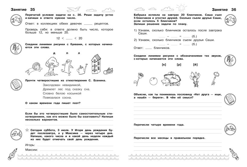 Комплексные летние задания. Переходим во 2-й класс
