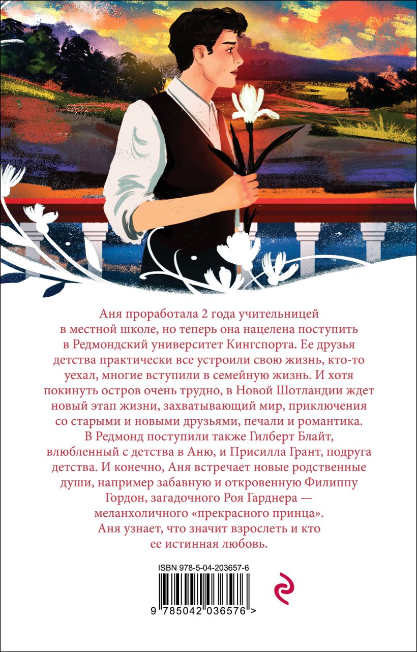 3-я книга «Аня с острова Принца Эдуарда». Третья книга из цикла про Аню Ширли. Аня проработала два года учительницей в местной школе, но теперь она нацелена поступить в Редмондский университет Кингспорта. Ее друзья детства практически все устроили свою жизнь, кто-то уехал, многие вступили в семейную жизнь. И хотя покинуть остров очень трудно, в Новой Шотландии ждет новый этап жизни, захватывающий мир, приключения со старыми и новыми друзьями, печали и романтика.