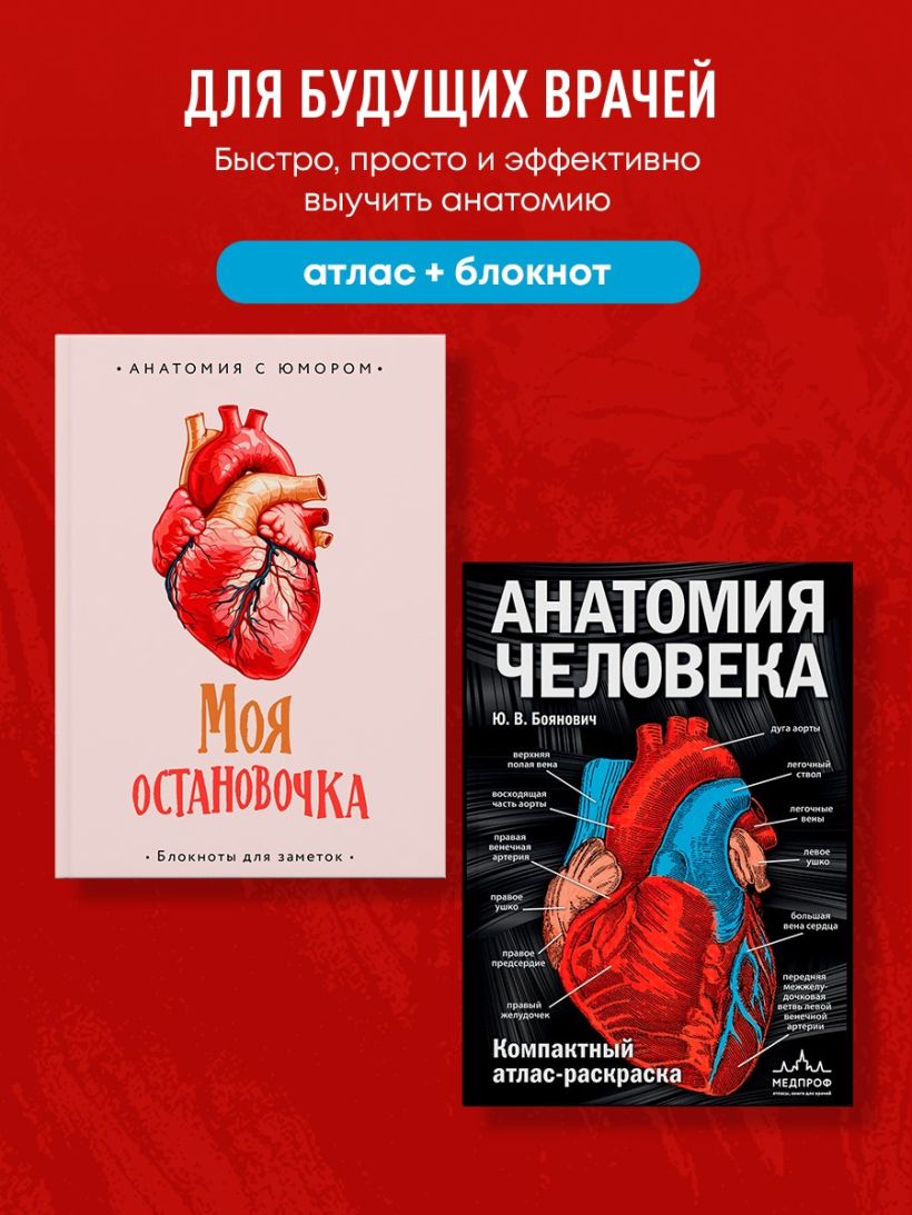 Комплект: Анатомия человека: компактный атлас-раскраска+Моя остановочка. Блокнот анатомический
