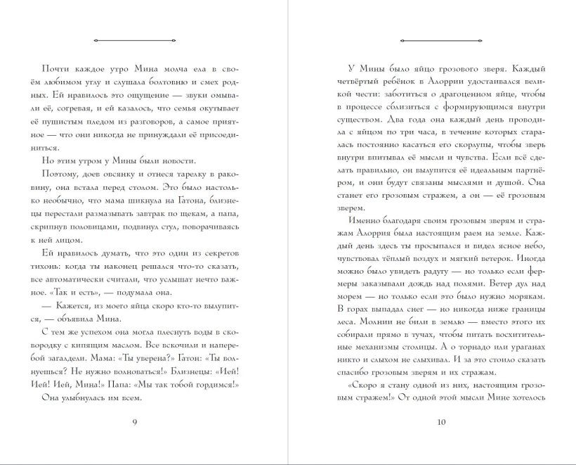 Каждый четвёртый ребёнок в Алоррии удостаивается великой чести: заботиться о драгоценном яйце. Если всё сделать правильно, из него вылупится ваш идеальный союзник, и вы будете связаны мыслями и душой. Так Мина стала грозовым стражем дракона Пиксита, а он — её грозовым зверем. Именно благодаря таким, как они, Алоррия — настоящий рай на земле. Каждый день здесь ясное небо и тёплый ветерок.