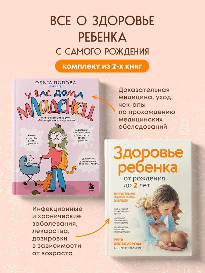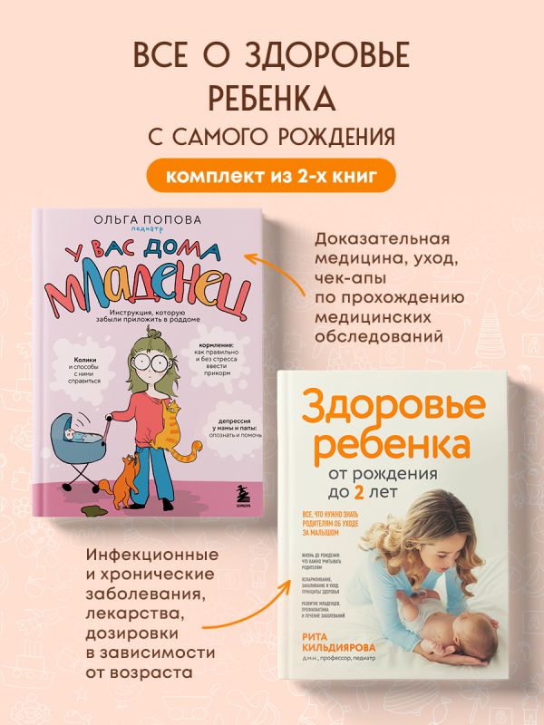 Комплект их 2-х книг: У вас дома младенец. Инструкция, которую забыли приложить в роддоме. Здоровье ребенка от рождения до двух лет. Все, что нужно знать родителям об уходе за малышом